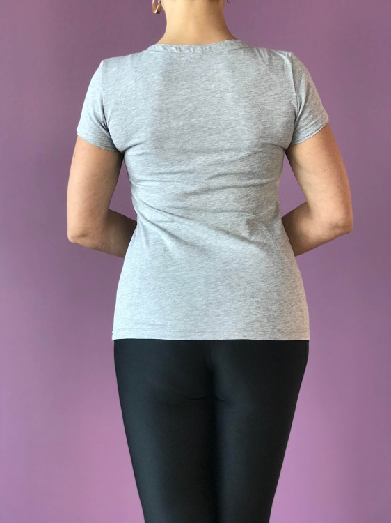 כמות של חולצת "OM NEW" אפורה